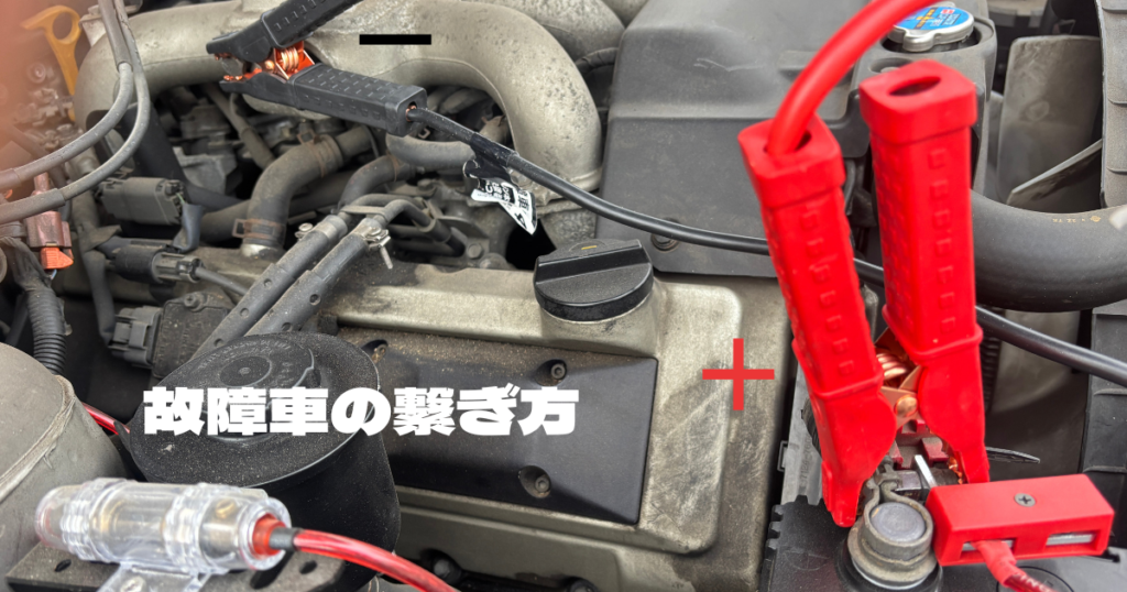 故障車のマイナス(➖)はバッテリーのマイナス(➖)端子ではなく、