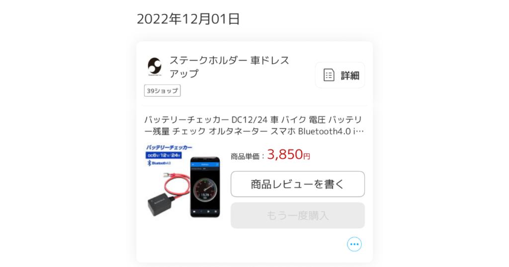 購入履歴が、2022年12月でしたので、