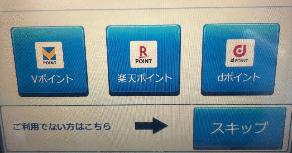 支払い方法のあとに「ポイントカードはありますか?」画面が出る。