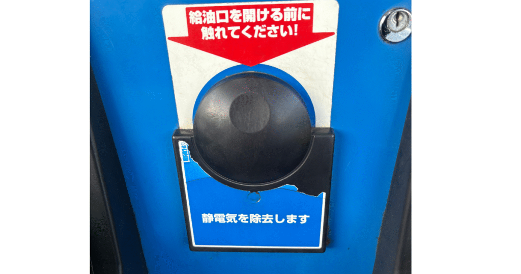 これは ガソリンに静電気が引火しないようにするための大事なステップ なんだ。